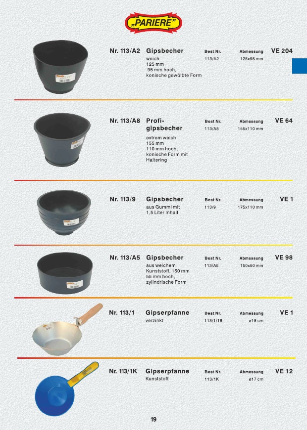Gipsbecher, Profigipsbecher, Gipserpfanne